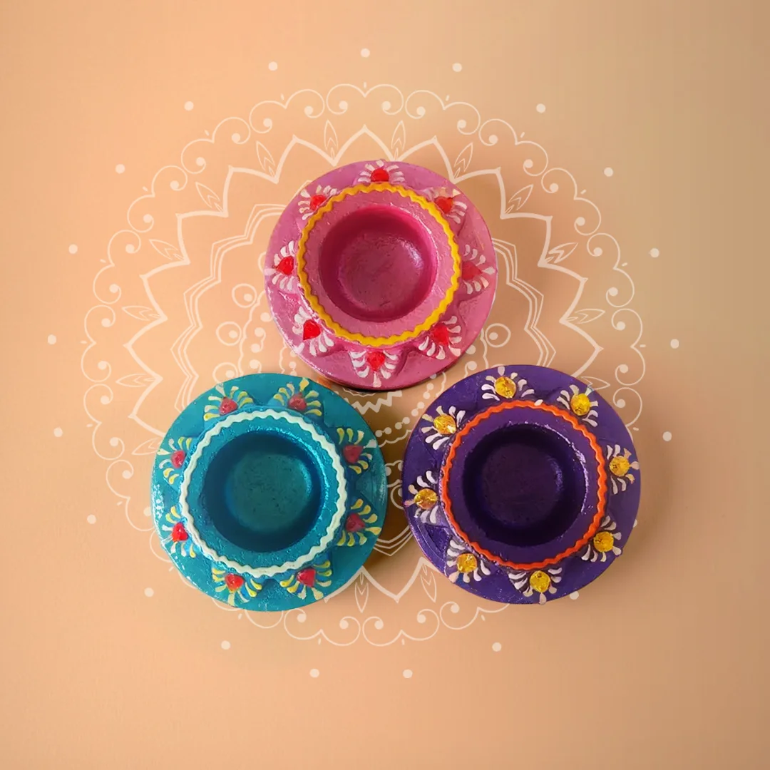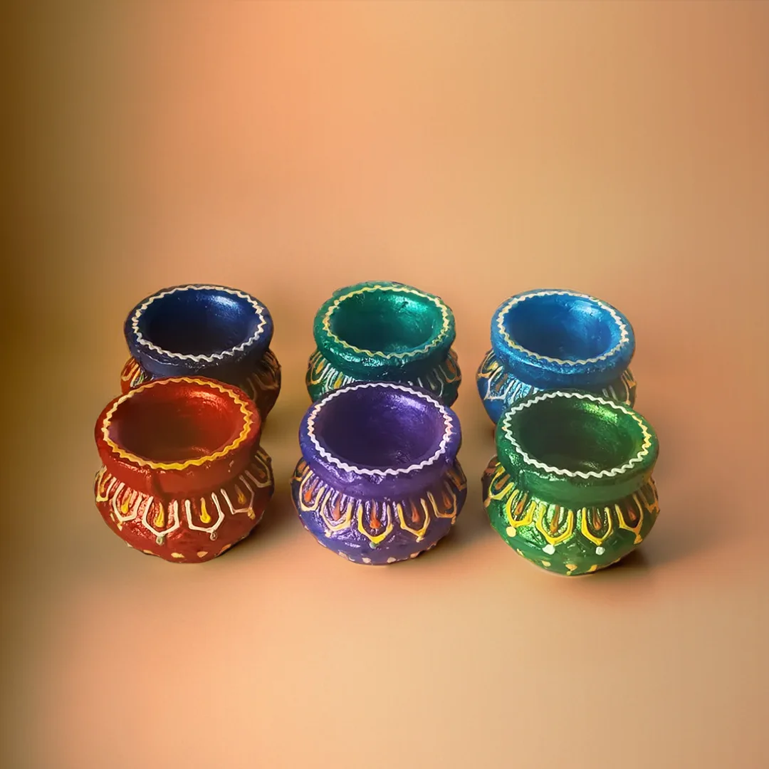 Introducing Matki, a set of small and cute multicolored diyas available in 3-pack or 6-pack variants. Perfect for Diwali and festive décor, these eco-friendly diyas brighten your space with their vibrant colors and traditional charm. Designed to add a playful touch to your celebrations, Matki brings together sustainability, artistry, and a burst of color in every pack.